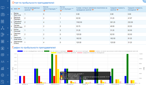 - Автоматично враховуйте оплату викладачам за групові заняття і індиві.
