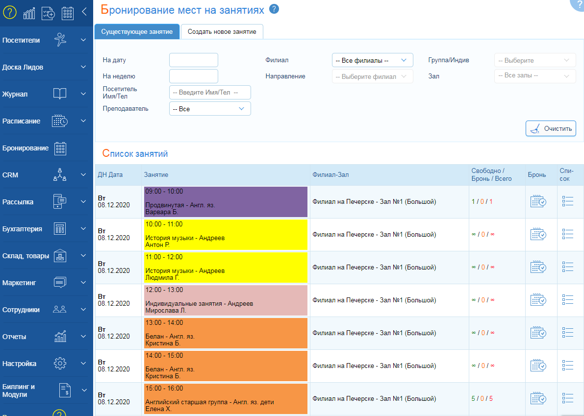 - записуйте клієнтів на заняття онлайн або через ваших адміністраторів;