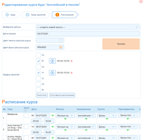 - керуйте розкладом курсів і занять: переносами, замінами у зв'язку зі святами і карантином;